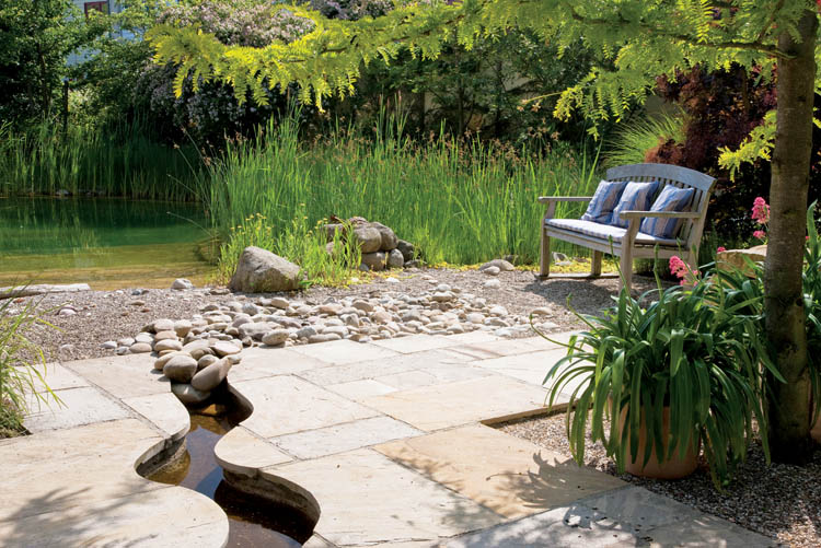• Gospodyni uparła się, aby ścieżkę prowadzącą do wody i brzeg oczka wyłożyć płytami z piaskowca.