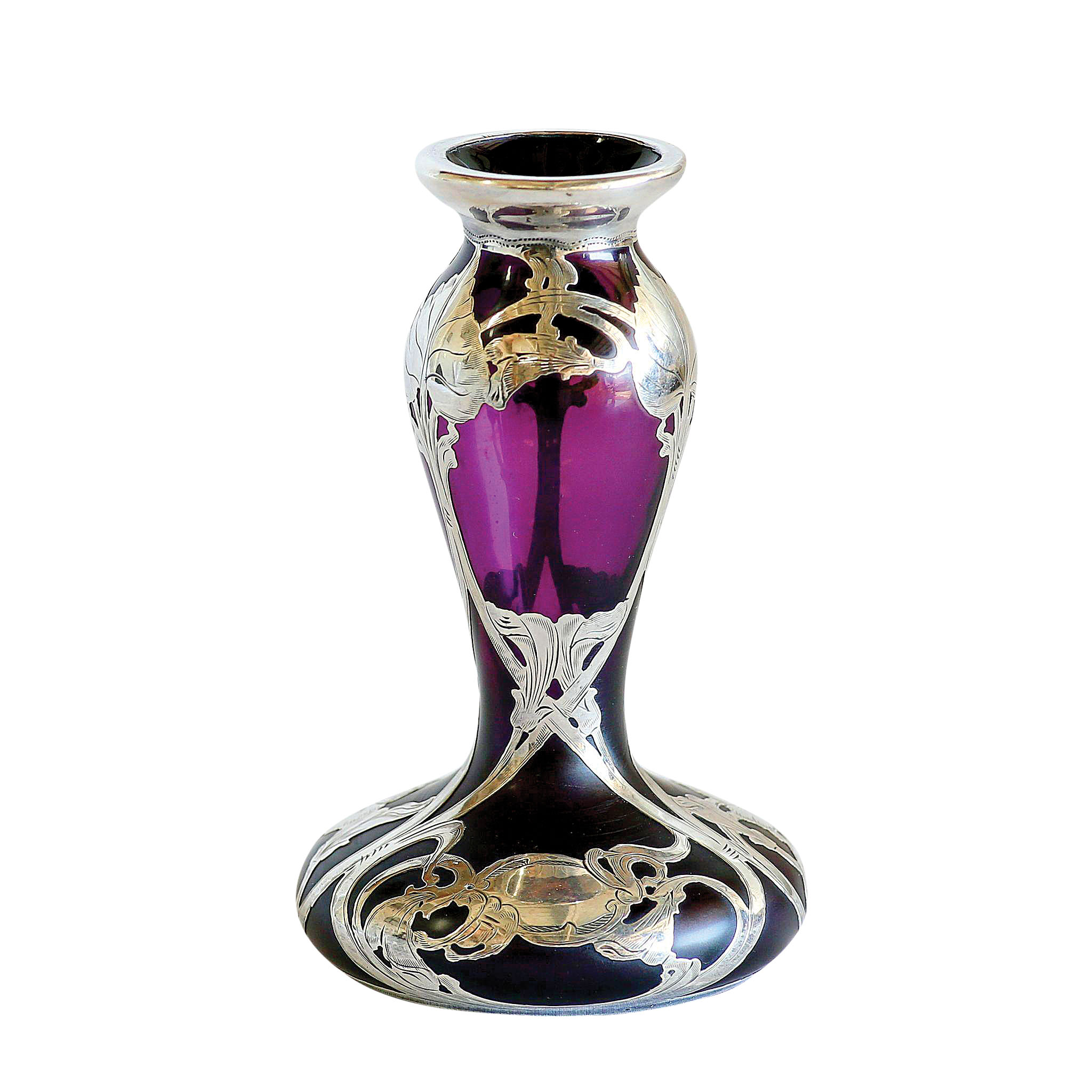 Zdobione metodą silver overlay przedmioty największe triumfy święciły w czasach art nouveau i art déco. Szczególnie chętnie dekorowano buteleczki na perfumy.
