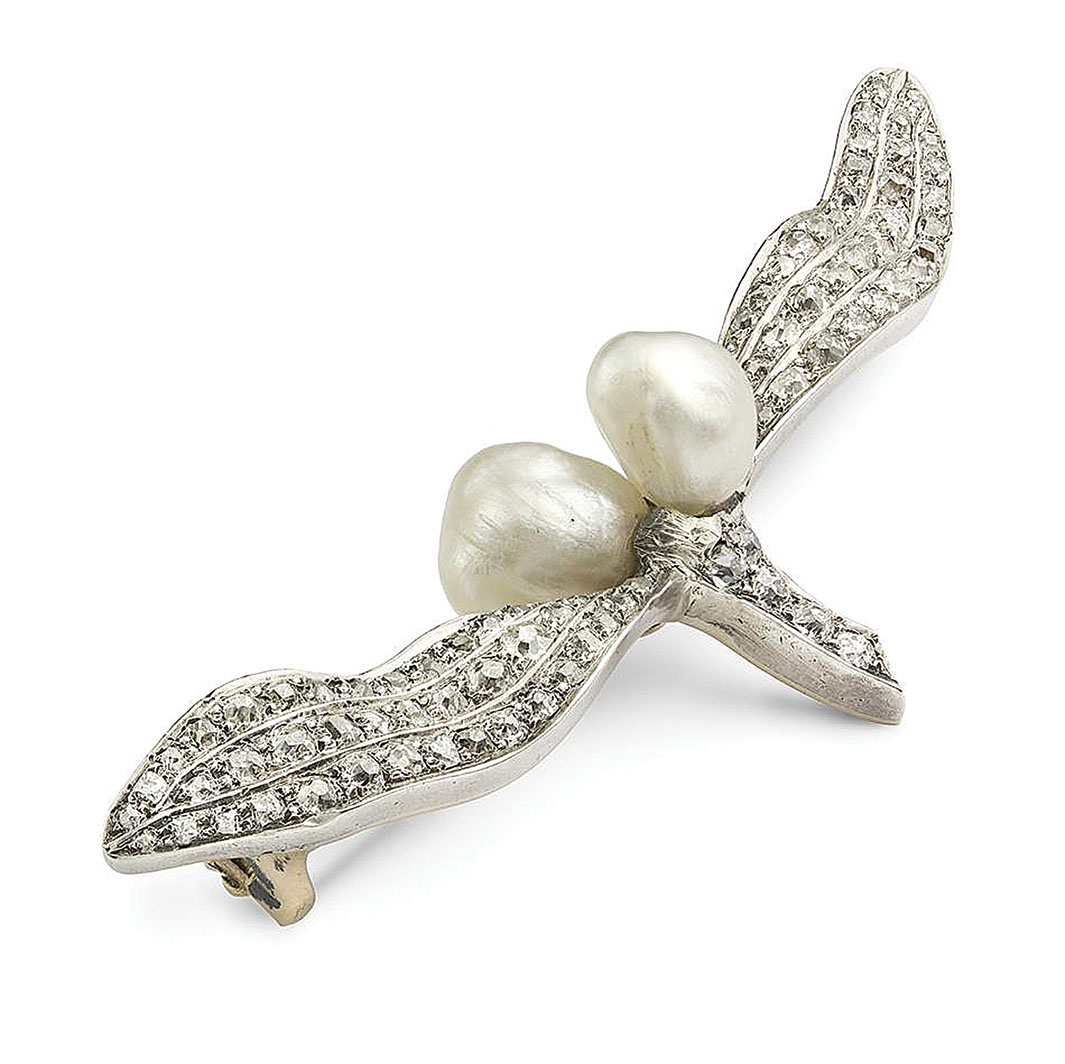 Broszka w kształcie jemioły z perłami i diamentami, koniec XIX w.