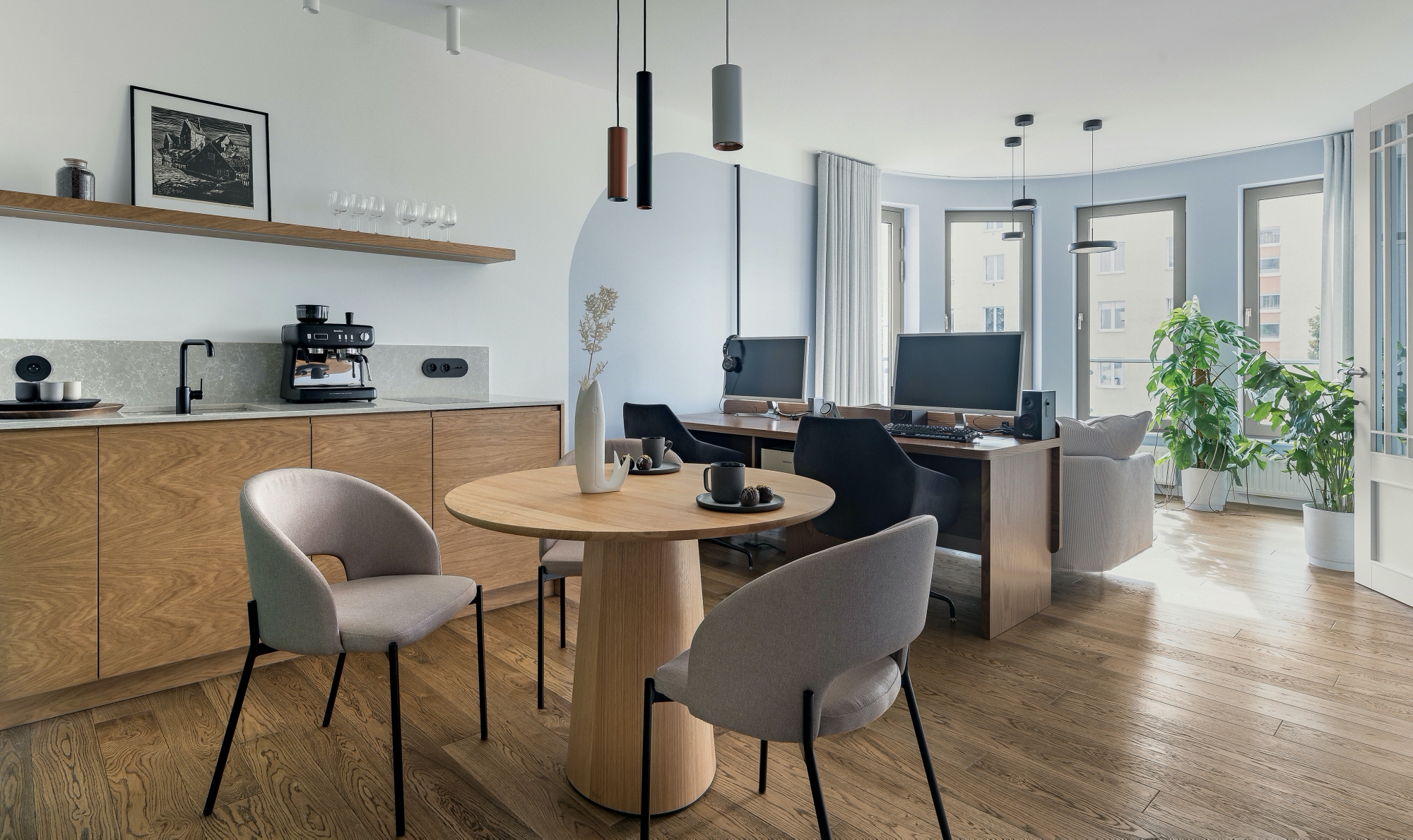 Powrót do artykułu Sprytnie i funkcjonalnie zaprojektowane 48-metrowe mieszkanie – z otwartą przestrzenią, meblami na wymiar i modnymi łukami