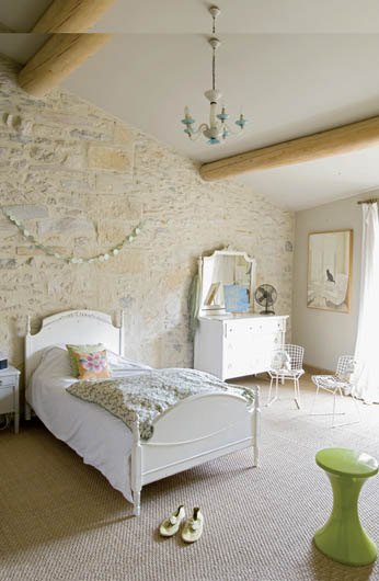 • Żeby ocieplić surowe kamienne wnętrza wybrano spokojne kolory: od kremowych po beże i dołożono do tego najbardziej miękkie ze