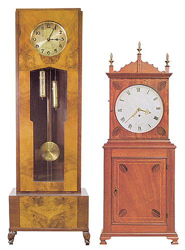Zegar podłogowy, Gustaw Becker, Śląsk, lata 20./30. XX w.; cw 2900 zł niesprzedany, Ostoya. Zegar stojący, mahoń, USA, XVIII w., kolekcja Israela Sacka.