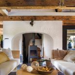 • salon z drewnem w starym domu