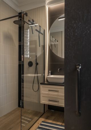 • nowoczesna łazienka z drewnem w starym domu