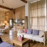 • Ceglane ściany są dekoracją salonu. Stodoła udomowiona