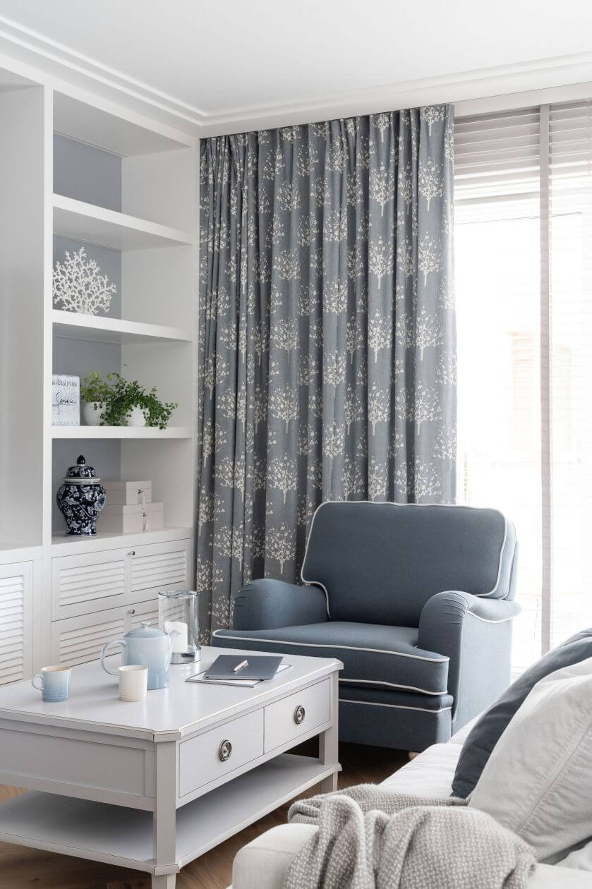 Ten apartament w stylu hamptons jest wygody i pełny świata – 95-metrowe mieszkanie urządzono w odcieniach bieli, błękitów i szarości