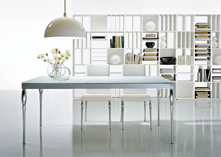 • Stół Domino z kolekcji Ciacci zrobiono z metalu malowanego na biało i laminatu w tym samym kolorze (do wyboru
