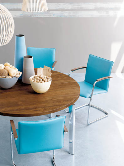 • Tradycja i nowoczesność: drewniany blat na chromowanych nogach. STUDIO ITALIA