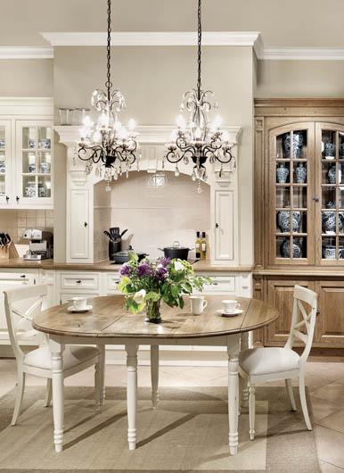• Jadalnia Luberon: stół (15 50 zł) i krzesła (2100 zł/szt.) z litego dębu nawiązują stylem do górskich chat we