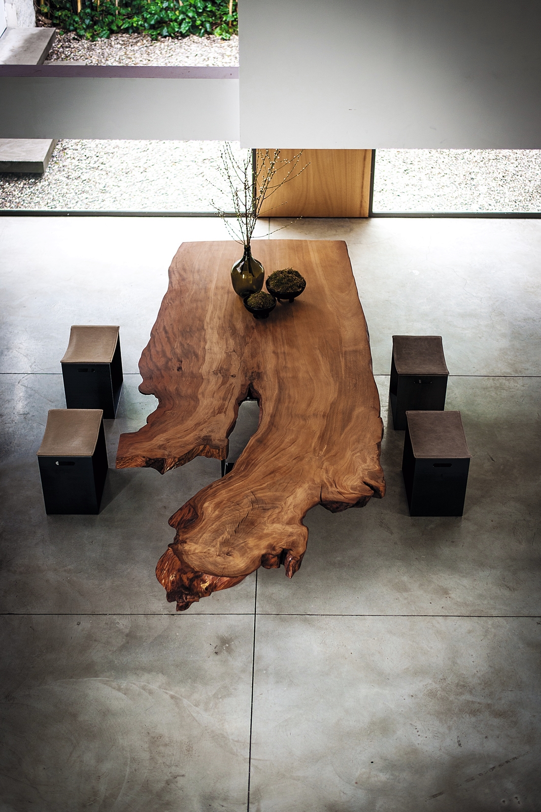 • Stół Tobi-Ishi, B B Italia. 30 stołów do jadalni z blatami z drewna, kamienia i szkła