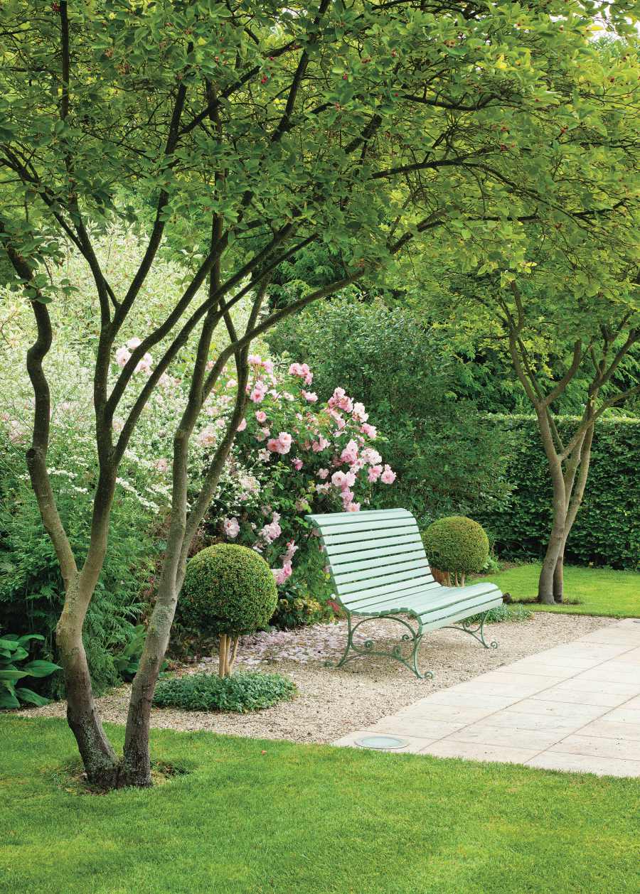 • Wokół strumyka rosną symetrycznie posadzone, przycięte starannie krzewy i ogromne kępy kwiatów.