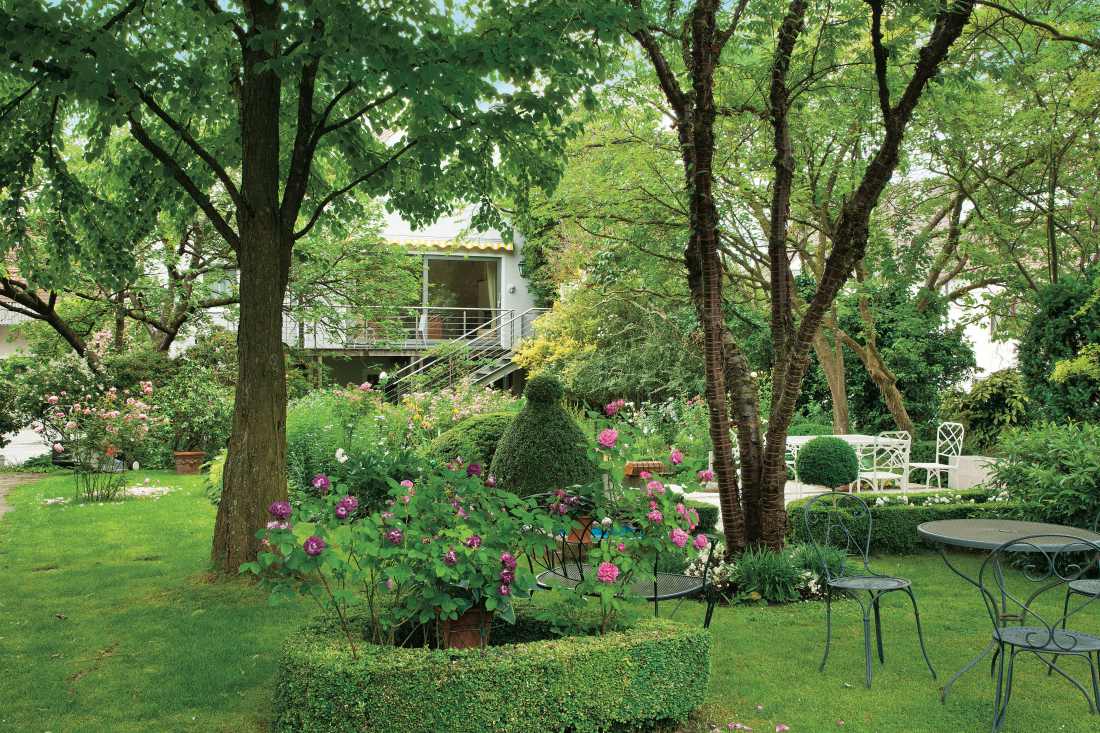 Ażurowe metalowe meble jak z ogródka francuskiego bistro nie rzucają się w oczy i nie psują naturalnego otoczenia. Zadbano o każdy szczegół