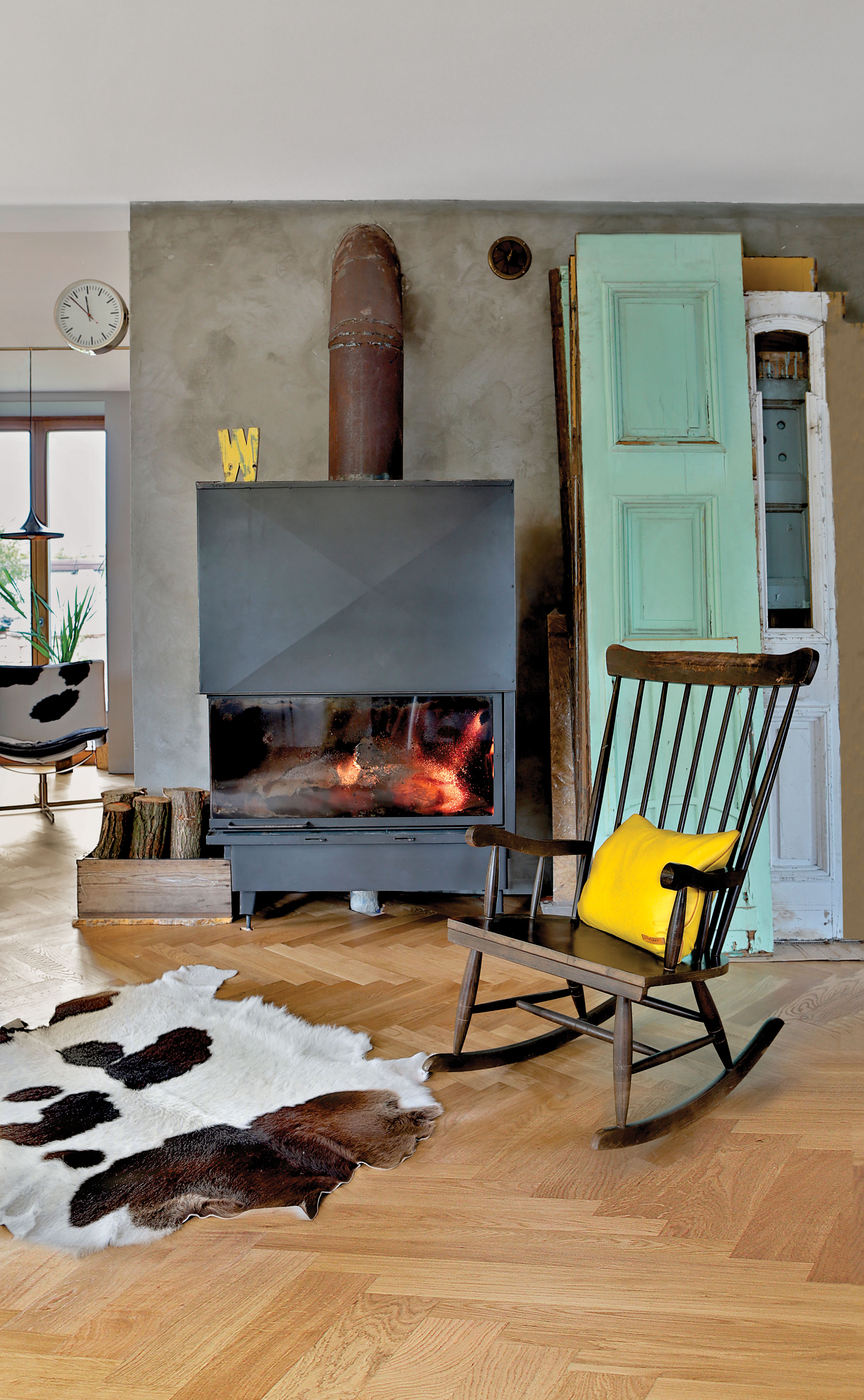 Parkiet na ścianie, światło ukryte w szczelinach, konsola z gazet, drzwi ledwie maźnięte farbą... U Dominiki nie można się nudzić!