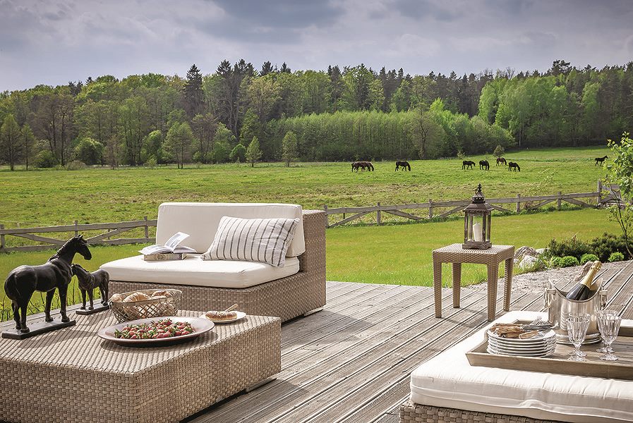 W środku – francuskie meble i angielskie tkaniny. Z zewnątrz – jak tradycyjne mazurskie siedliska.  Całość bardzo zgrabna i wysmakowana.