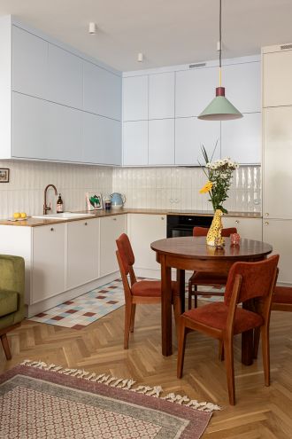 Eleganckie mieszkanie z błękitnymi drzwiami – urządzone „hotelowo” wnętrze sprzyja odpoczynkowi
