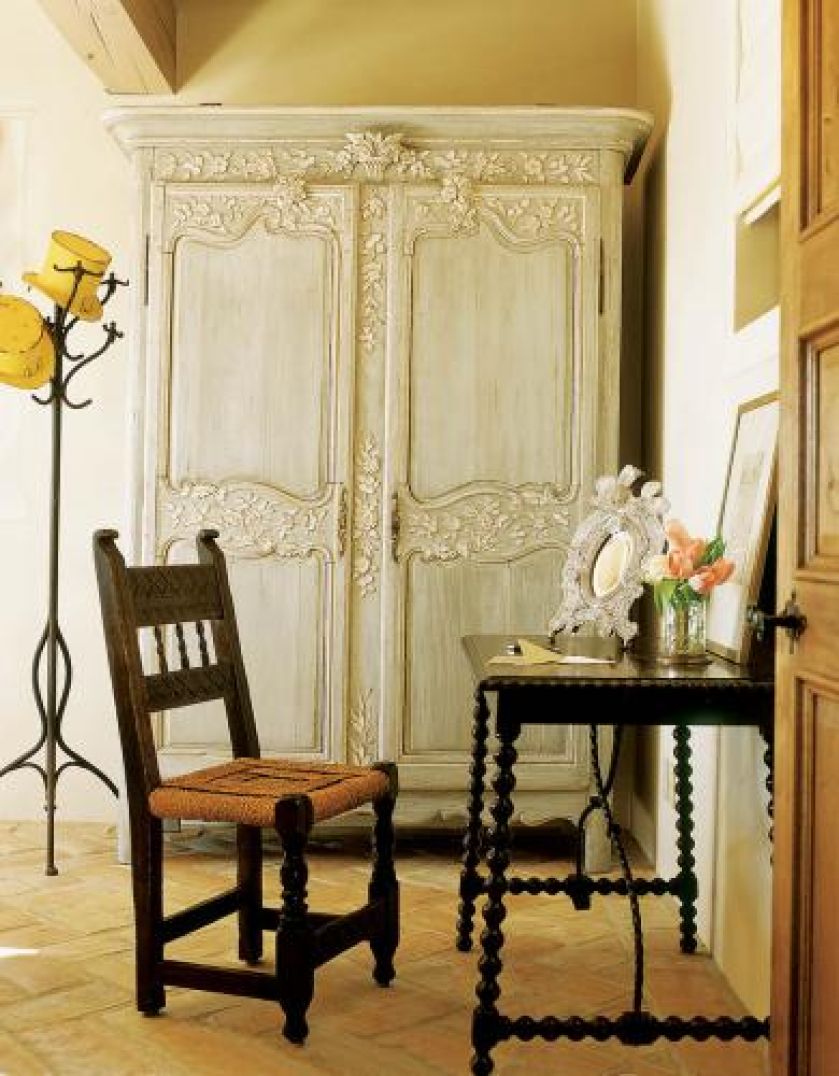 Zdobiona drewniana szafa. Prowansja odnaleziona w Kaliforni
