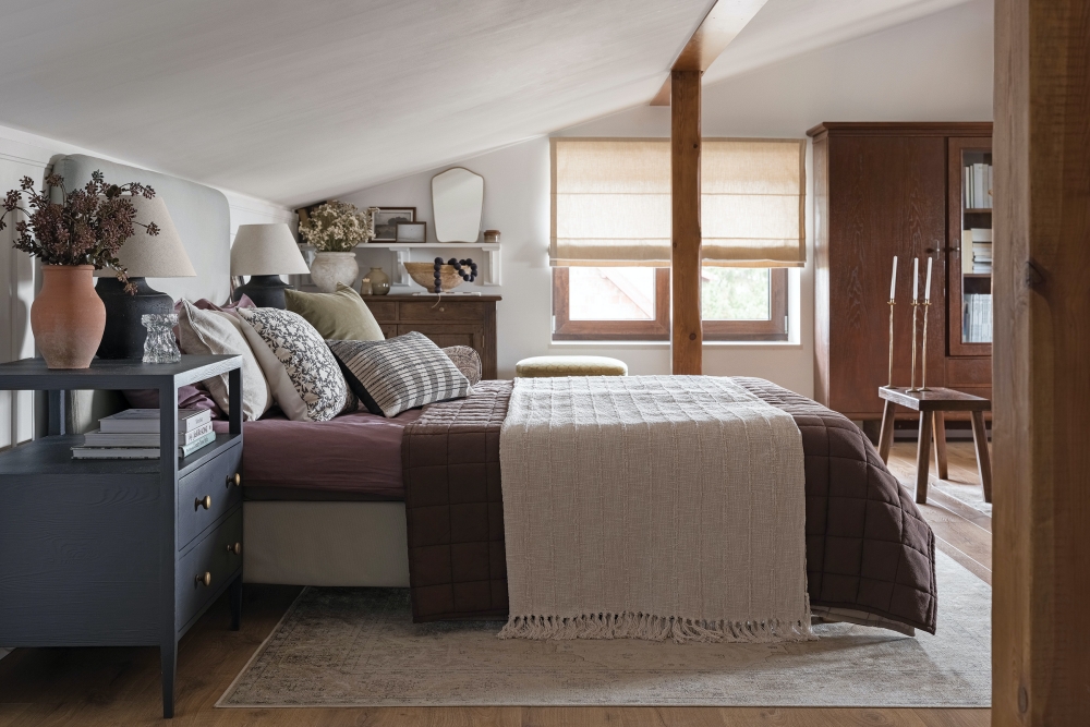 • sypialnia w domu architektki wnętrz Mai Różańskiej