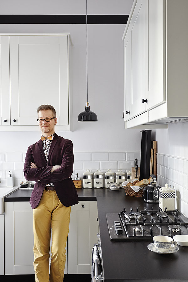 Stylowe ubrania, obowiązkowy melonik i laseczka w ręku są jego wizytówką. Kamienica, w której mieszka, i samo mieszkanie idealnie pasują do tego obrazu.
