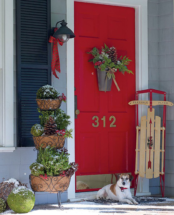 • Drzwi udekorowane w stylu skandynawsko-country: oparte o ścianę sanki także staną się efektowną częścią świątecznej