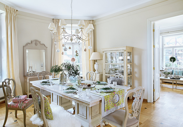 • W domu królują bielone meble francuskie i beżowe obicia.