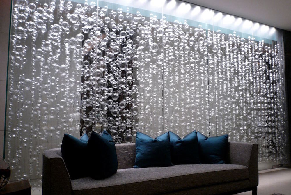 • Zrealizowana fantazja właściciela domu w postaci świecącej kotary wykonanej z dmuchanych szklanych baniek o różnych