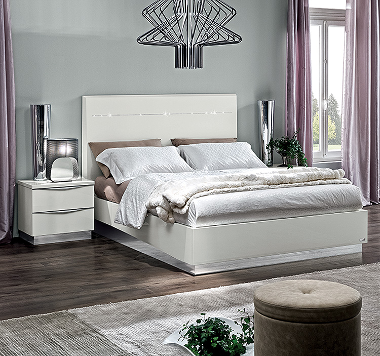 • Lakierowana na wysoki połysk rama łóżka Onda ma ledową intarsję , od 930 euro, Camel Group