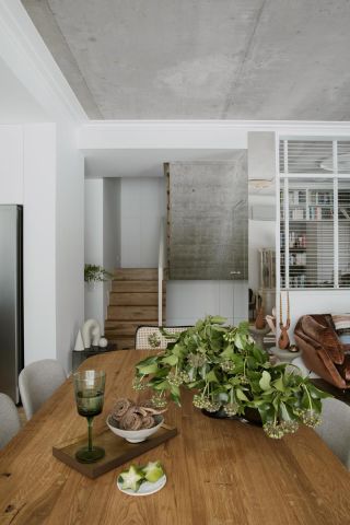 Drewno w miodowym kolorze wprowadza do szarego salonu dużo ciepła, bmstores.co.uk