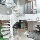 Jak w teatrze – szklane ściany i wiszące schody w nowoczesnym wnętrzu