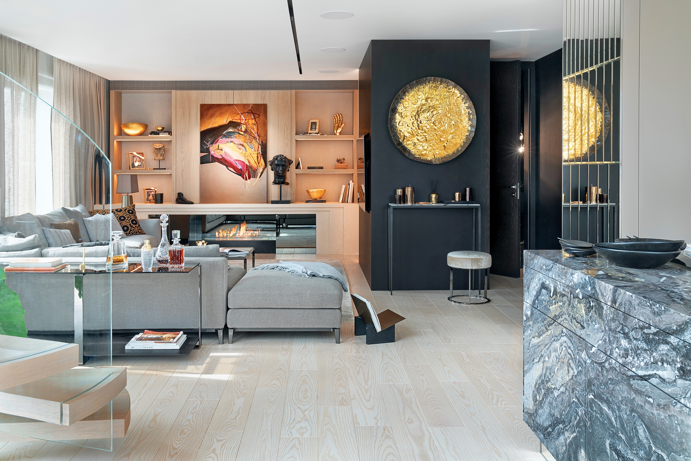 Schody i kuchenna wyspa lewitują. Światła są wszędzie. Zasłona na szklanych ścianach ma sześć metrów długości. W tym nowoczesnym wnętrzu można poczuć się jak w teatrze.
