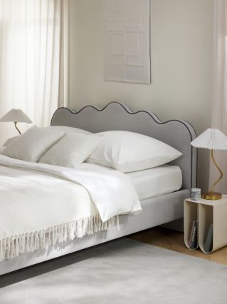 • łóżko z zagłówkiem o falowanej linii