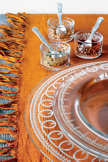 • Talerzyk Amra Emerald (44 zł). Do kompletu kupimy też szklanki i dzbanek. VILLA ITALIA