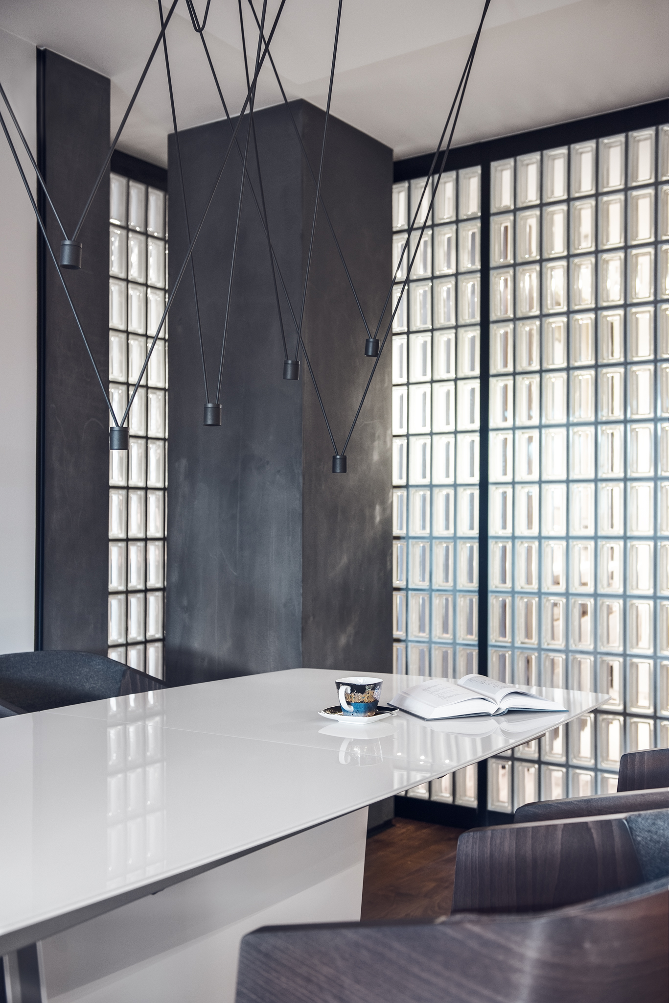Luksfery wpuszczają światło do garderoby, a jednoczśnie odbijają naturalne światło wpadające do salonu przez wielkie okna.