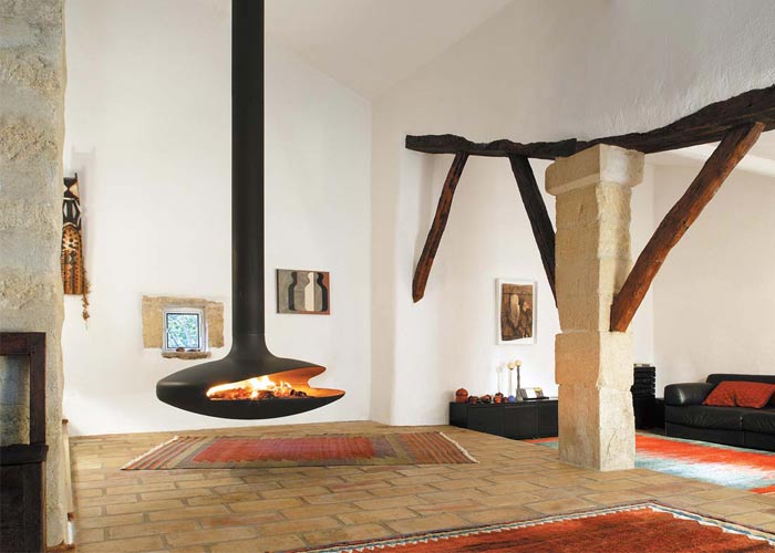 • Do surowego, minimalistycznego wnętrza pasuje podwieszany kominek Gyrofocus - sztandarowy model firmy Focus. Zaprojektował go
