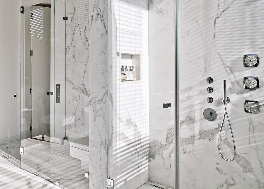 • Biel przełamuje gdzieniegdzie egzotyczne drewno.