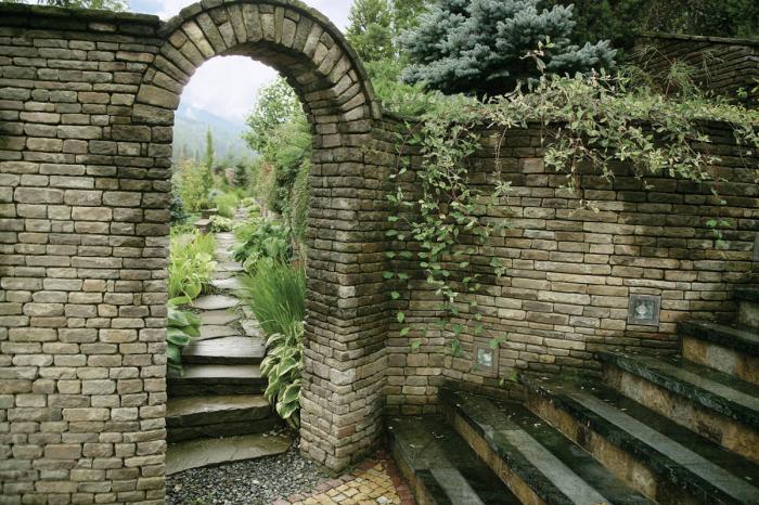 • Ogród ukryty wśród gór. Tarasowy ogród otoczony naturą