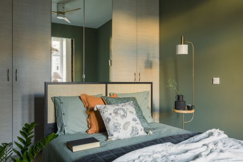 Zieleń i drewno – mieszkanie o powierzchni 50 m2 w stylowej kamienicy w Łodzi, utrzymane w duchu kolonialnym