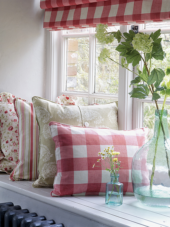 • Kolekcja Genevieve, roleta i poducha Old Rose, kolejne: Harriet Sage, Belle Old Rose, Maude Old Rose – bawełna drukowana,