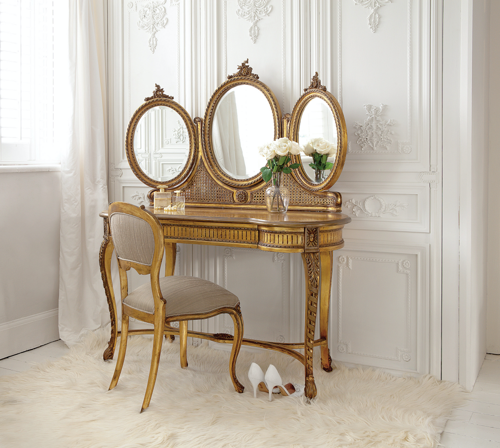 Toaletka Versailles Gold Gilt, takiego mebla nie powstydziłaby się sama Madame de Pompadour, frenchbedroomcompany.co.uk