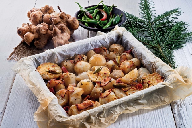 • Pieczony topinambur z powodzeniem zastąpi kartofle: obierz go, umyj i zapiecz z przyprawami!