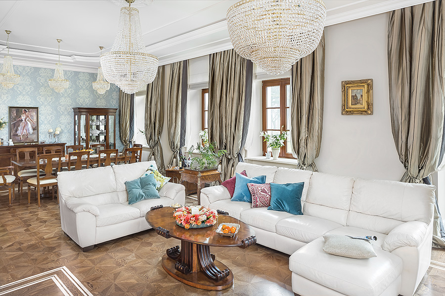 • Odbudowany pałacyk zyskał nowy klasyczny wystrój. Znajdziemy tu eleganckie parkiety, antyki, marmury i kryształowe żyrandole.