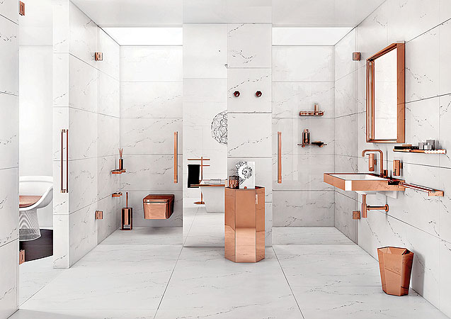 • MIRAGE, kolekcja z umywalką, a także akcesoriami łazienkowymi w modnym miedzianym kolorze, POMD’OR, pomdor.com