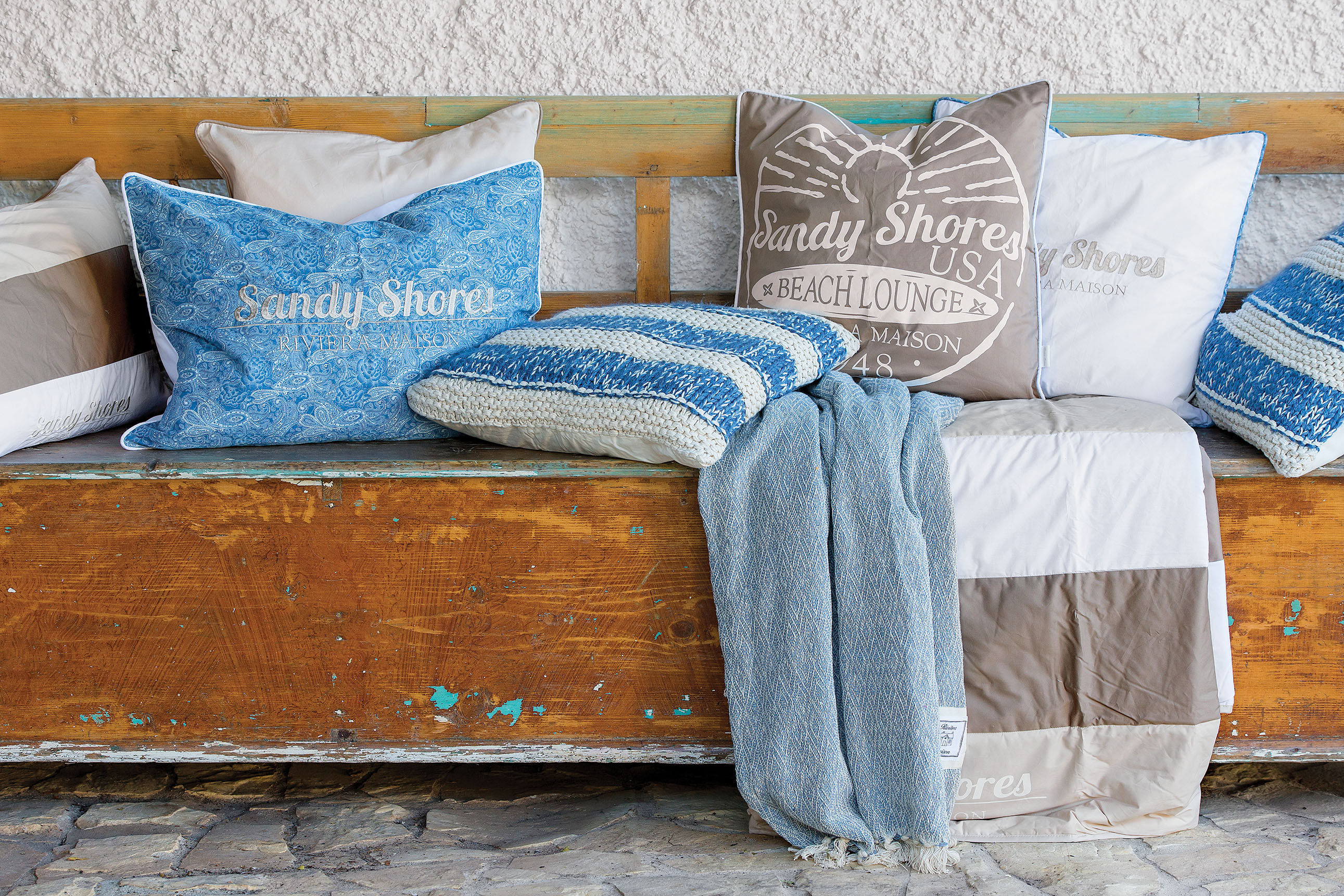 W stu procentach kojarzą się z przyjemnymi wakacjami nad morzem. Są tu poszewki na poduszki oraz pledy Sandy Shores marki RiviÈra Maison w najróżniejszych odcieniach piasku, z delikatnej bawełny. Producent mówi, że mają wywołać przyjemne uczucie „soli we włosach i oblepionych piaskiem stóp”, czyli pełnej beztroski gorącego dnia. Do tego porcelanowe taler