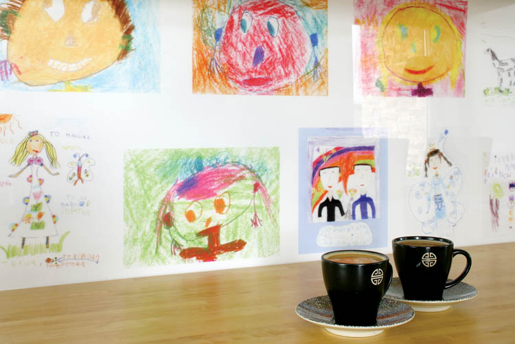 • W kuchni podziwiać można tapetę z dziecięcych rysunków.