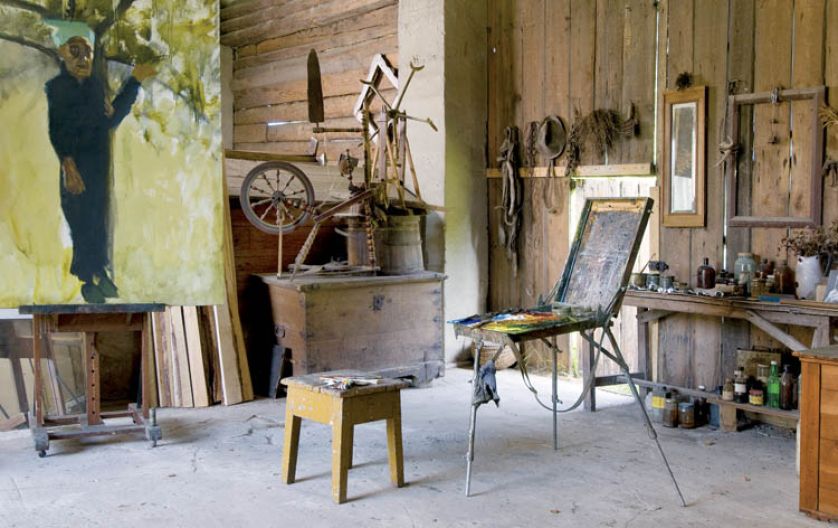 • Wiekowa stodoła z sosnowych bali to też pracownia.