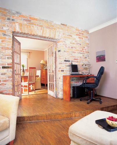 • Ściany z cegły to po prostu nieotynkowane fragmenty domu. Ta w salonie powstała po to, żeby na jej tle stanęła koza.