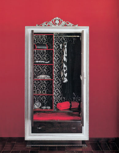 • Szafa z kolekcji Step 01 fabryki Sma. Ma przesuwane drzwi z barwionego na czerwono szkła. ORIGINE ITALIA