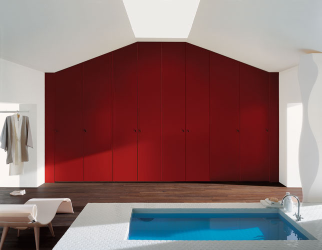 • Lakierowana garderoba Sipario firmy Pianca idealnie wpasowana w poddasze. Może być fornirowana drewnem tekowym, czereśni