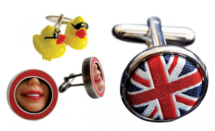 Współczesne spinki-kaczki, WWW.GALANTE.PL Wspołczesna, z twarzą lalki Barbie, projektu Margaux Lange, fot. EAST NEWS Współczesna, z motywem flagi brytyjskiej, Paul Smith Shop, Londyn, fot. FLASH PRESS MEDIA