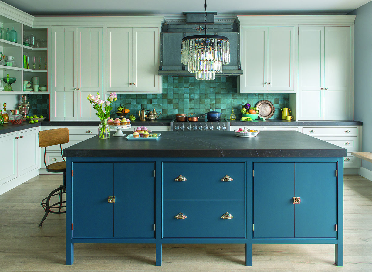 HOLLAND PARK, inspirowany angielską klasyką, ciekawe kolory: śmietanowa biel, chłodny błękit i grafit na blacie,