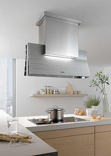 Wyciąg DA 500D ma ruchome skrzydła, które możemy otworzyć lub zamknąć, w zależności od tego, czy gotujemy wodę, czy smażymy rybę. Zrobiony jest z matowej stali szlachetnej. Cena - 15 990 zł. MIELE